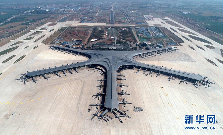 2019年6月12日無(wú)人機(jī)拍攝的建設(shè)中的青島膠東國(guó)際機(jī)場(chǎng)。新華社記者李紫恒攝