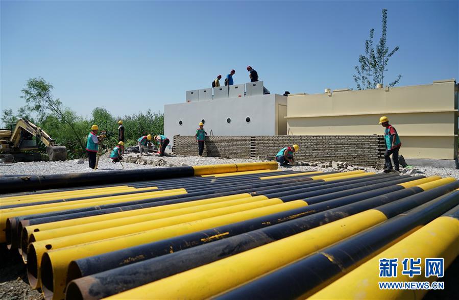 這是8月31日拍攝的白洋淀望月島污水凈化工程施工現(xiàn)場(chǎng)。新華社記者牟宇攝