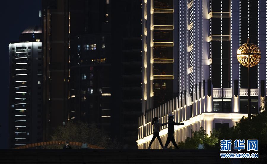 4月1日晚,兩位小朋友在江灘公園玩耍。新華社記者費茂華攝