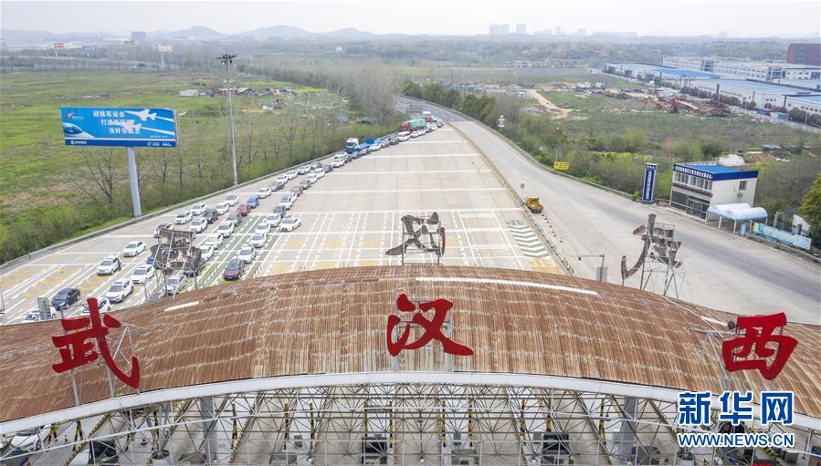 3月24日,在武漢西高速收費站交通卡點,返漢車輛排隊等候入城(無人機照片)。當日,湖北省新冠肺炎疫情防控指揮部發(fā)布通告說,湖北省除武漢市以外地區(qū),將于3月25日起解除離鄂通道管控,武漢市將于4月8日起解除離漢離鄂通道管控措施。隨著近日武漢部分企業(yè)逐漸復產(chǎn)復工,進入武漢的返城務工人員陸續(xù)增多,車輛在武漢西高速收費站交通卡點有序排隊返回武漢。工作人員對返城人員檢查體溫,并核查證明健康的“綠碼”和身份證后放行。新華社記者才揚攝
