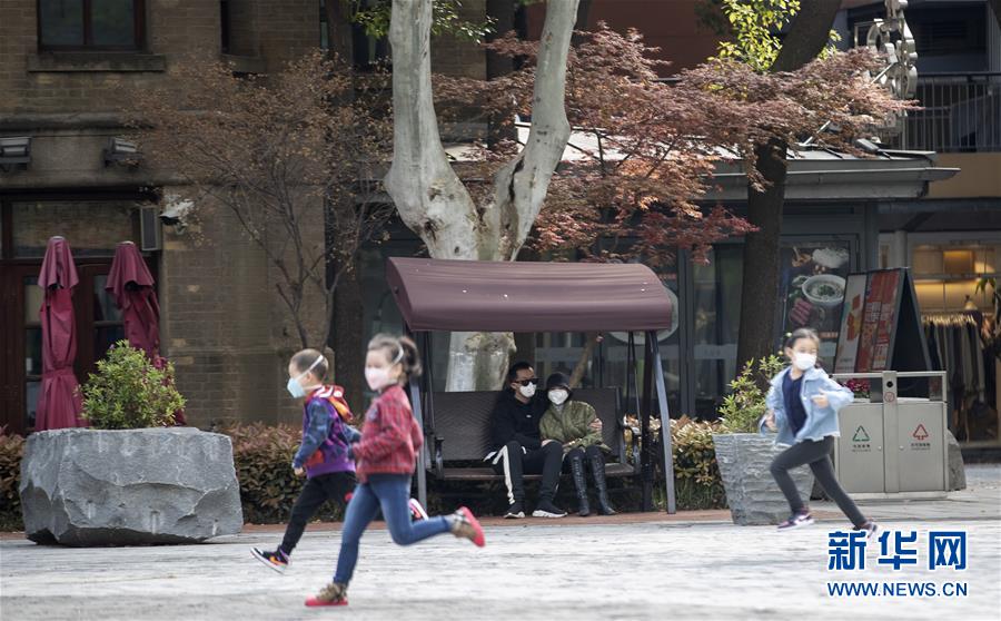 4月1日,在武漢天地廣場(chǎng),人們?cè)谙硎艽汗?。新華社記者費(fèi)茂華攝