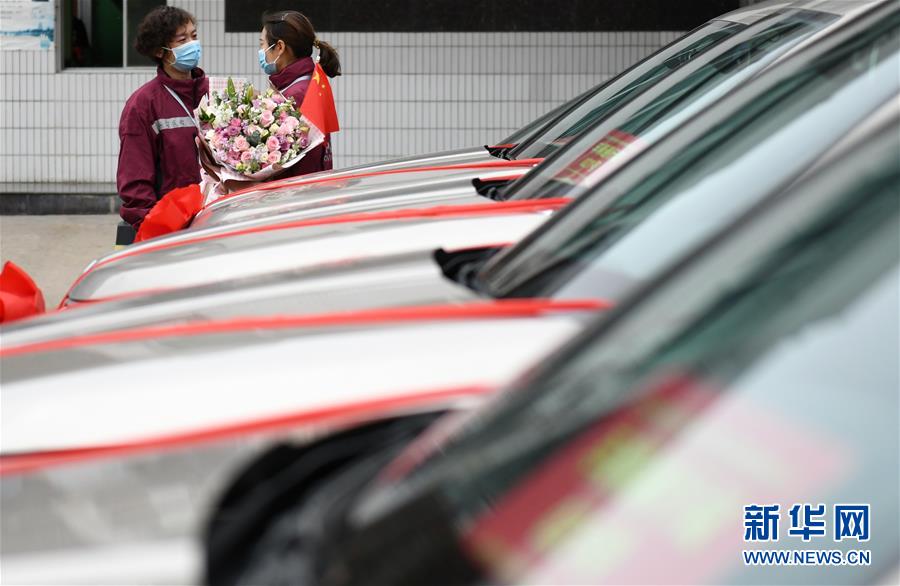 4月3日,乘車踏上歸途的寶雞市三家醫(yī)院的醫(yī)療隊隊員與“戰(zhàn)友”告別。 當日,陜西省第一批援鄂醫(yī)療隊137名隊員在陜西省工人療養(yǎng)院結(jié)束了為期兩周的隔離休養(yǎng)。醫(yī)療隊員與“戰(zhàn)友”深情作別后,陸續(xù)踏上歸途。 新華社記者 李一博 攝