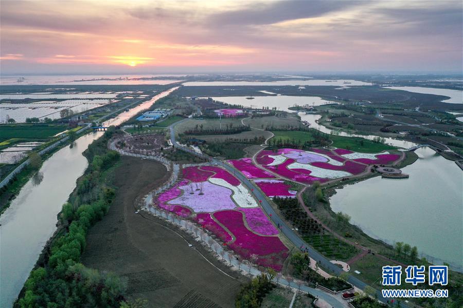這是4月6日拍攝的白馬湖風(fēng)光(無人機(jī)照片)。 新華社記者 楊磊 攝