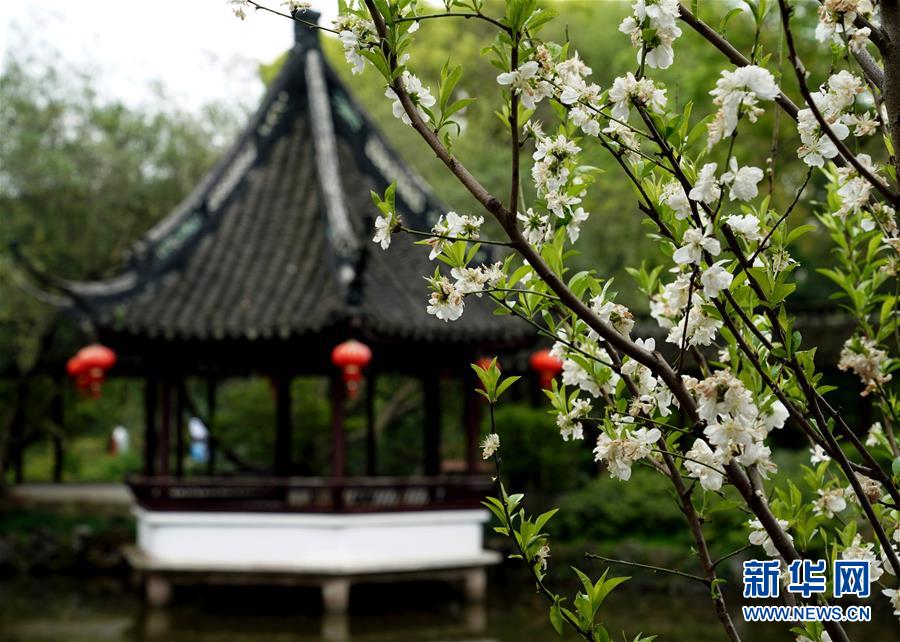 在位于上海松江的江南古典園林——醉白池,春花與古建筑相映襯(4月6日攝)。清明假期,上海的古典園林景點(diǎn)在做好防疫措施的同時(shí),有序開(kāi)放運(yùn)營(yíng)。在粉墻黛瓦、春色滿園中,游人們欣賞濃濃春意,感受古色古香。 新華社記者 劉穎 攝