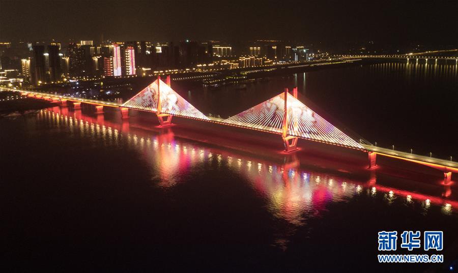 4月8日零時起,武漢市正式解除離漢離鄂通道管控措施,全市景觀照明開啟(無人機拍攝)。新華社記者程敏攝