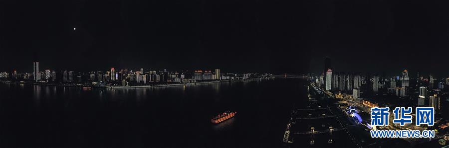 這是4月7日晚拍攝的武漢市江漢關博物館附近的長江兩岸建筑燈光夜景(無人機拍攝)。新華社記者沈伯韓攝
