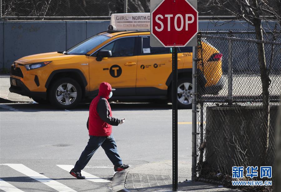 4月1日,行人走在美國紐約街頭。新華社記者王迎攝