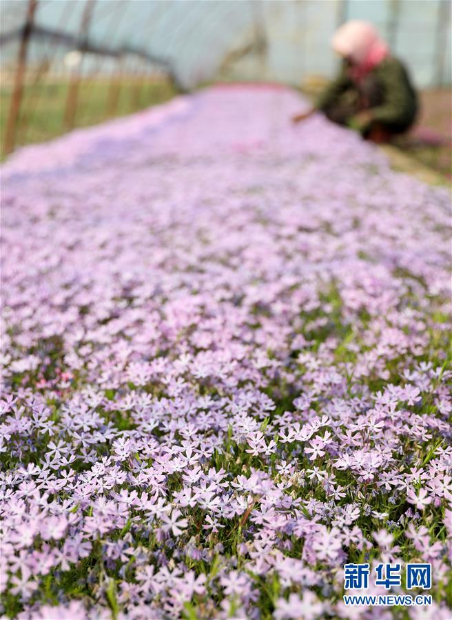 4月13日,在八角臺街道雅化村花圃內(nèi),花農(nóng)為宿根花卉除草。新華社記者姚劍鋒攝
