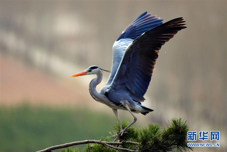 這是在呂梁市方山縣積翠鄉(xiāng)拍攝的蒼鷺(4月14日攝)。新華社記者曹陽攝