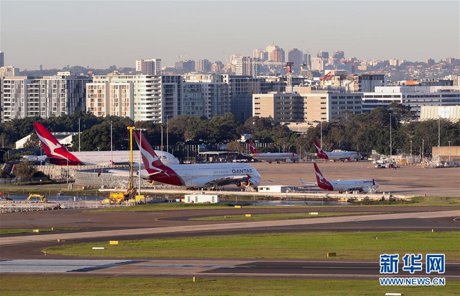 4月15日,在澳大利亞悉尼機(jī)場,多架澳洲航空客機(jī)停泊在維修區(qū)。新華社記者白雪飛攝