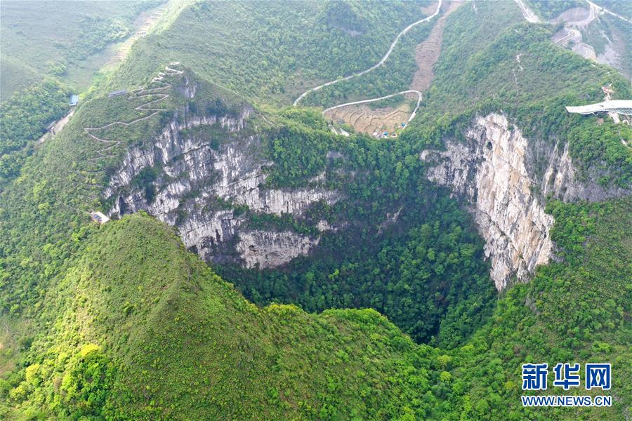 這是4月19日拍攝的中國樂業(yè)—鳳山世界地質(zhì)公園內(nèi)的大石圍天坑(無人機照片)。中國樂業(yè)—鳳山世界地質(zhì)公園位于廣西西北部,公園內(nèi)地質(zhì)遺跡包括天坑群、天窗群、鐘乳石等,具有重要的科研價值和美學觀賞價值。