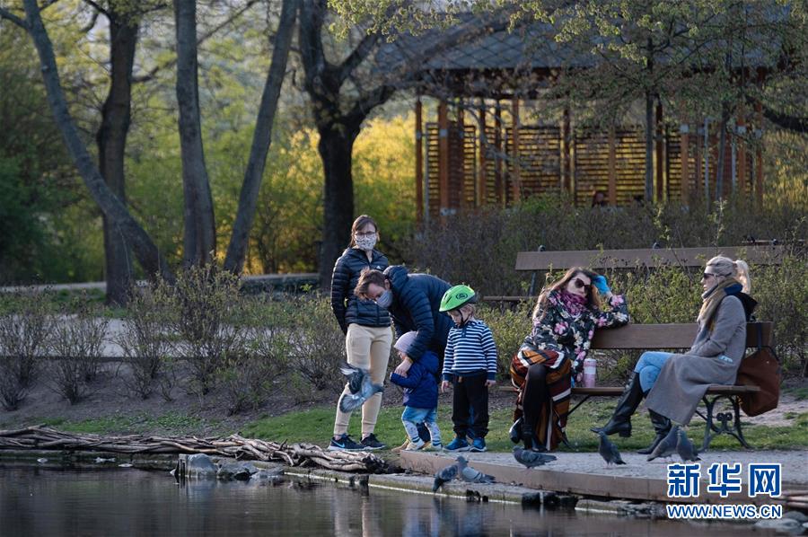 4月20日,人們在波蘭華沙的克拉辛斯基公園里散步。新華社記者周楠攝