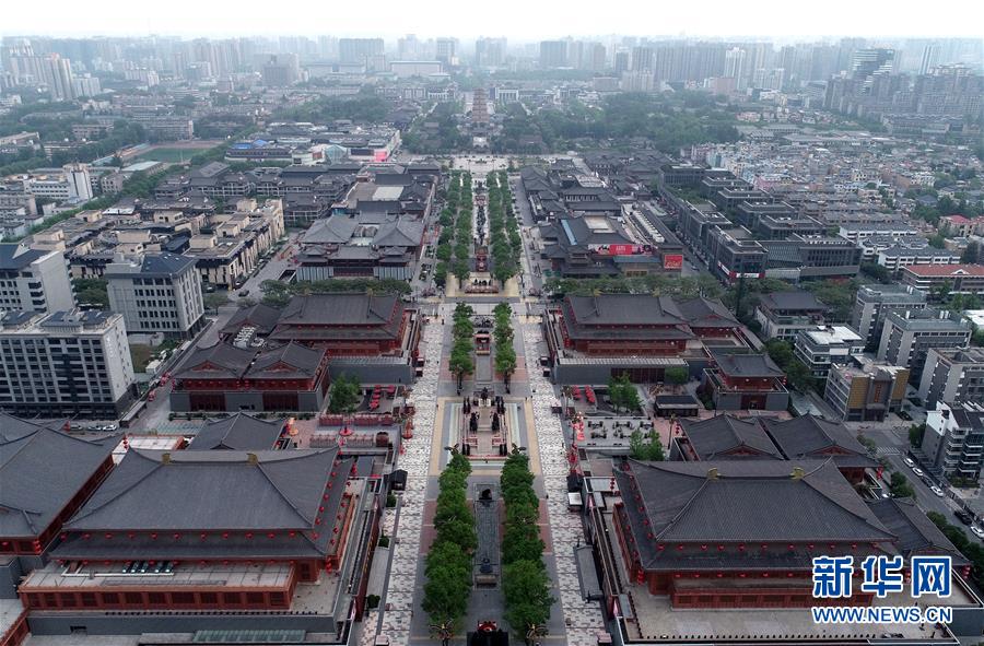 4月23日拍攝的西安大唐不夜城步行街(無人機照片)。  新華社記者 張博文 攝