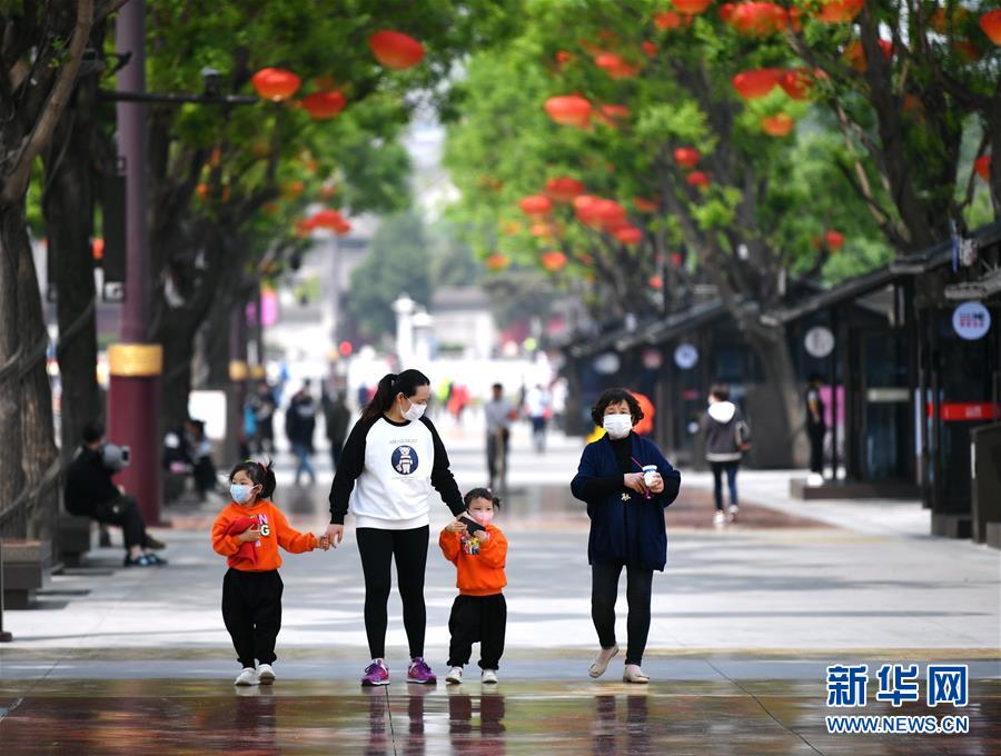 4月23日,游客在西安大唐不夜城步行街游覽。  新華社記者 張博文 攝