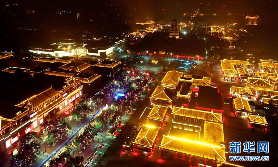 西安大唐不夜城夜景(2019年2月17日無人機照片)。  新華社記者 邵瑞 攝