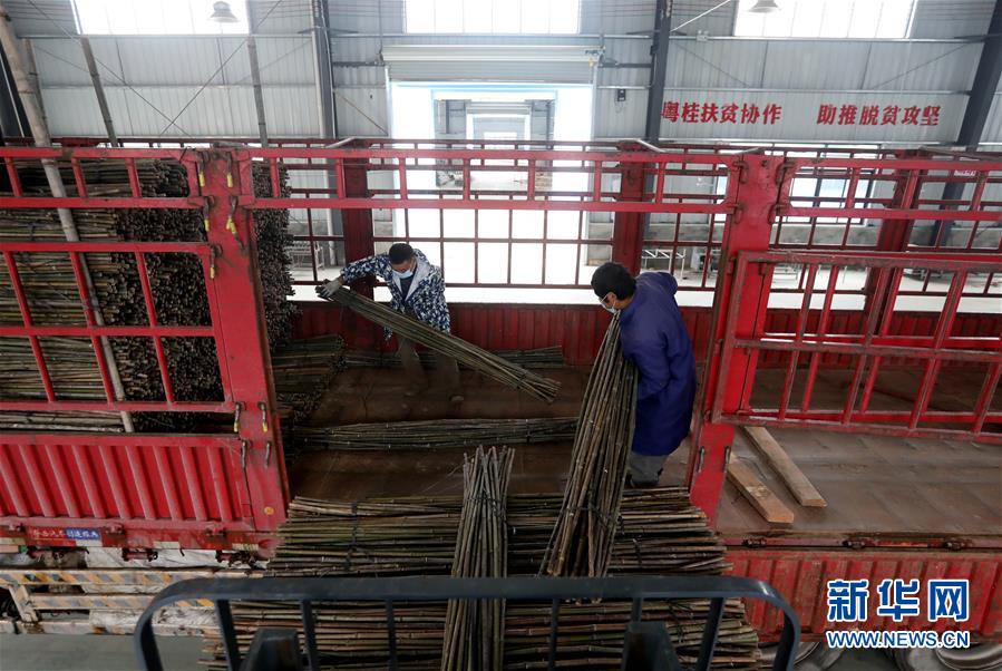 4月24日,在廣西融安縣農(nóng)產(chǎn)品加工暨粵桂扶貧協(xié)作產(chǎn)業(yè)園的一家竹制品外貿(mào)企業(yè),工人在裝載竹制品。日前,廣西柳州市融安縣農(nóng)產(chǎn)品加工暨粵桂扶貧協(xié)作產(chǎn)業(yè)園內(nèi)的企業(yè)已全部復(fù)工復(fù)產(chǎn),園區(qū)竹制品外貿(mào)企業(yè)正在加緊生產(chǎn),在完成外貿(mào)訂單的同時(shí)主動(dòng)對(duì)接國(guó)外市場(chǎng),研發(fā)新的竹制品,提高產(chǎn)品附加值。新華社記者趙曼君攝