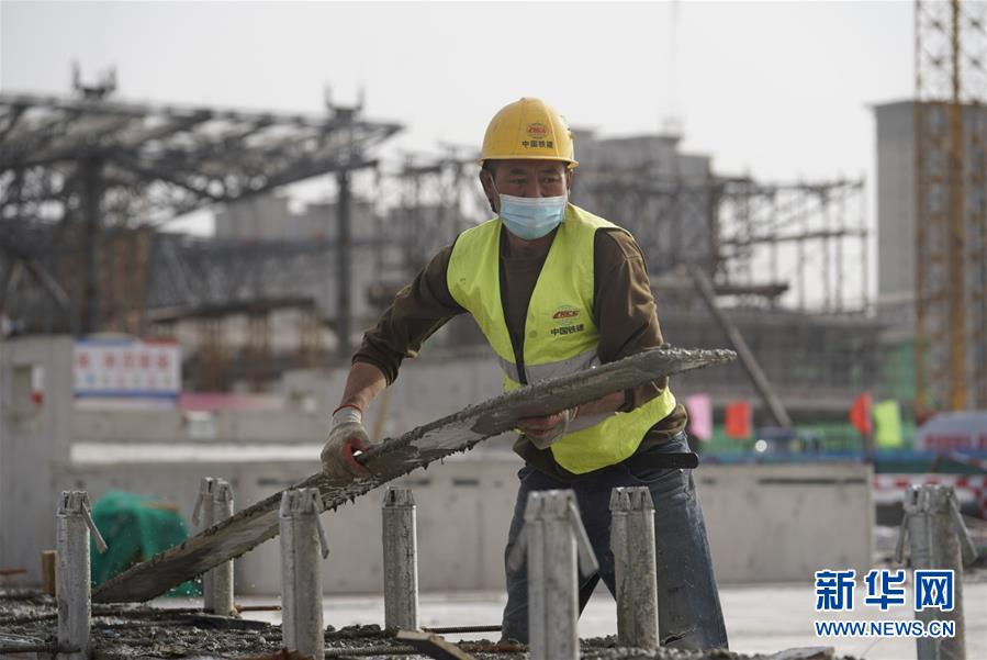 4月24日,中鐵建設(shè)集團(tuán)的工人在星火站施工。北京星火站是京沈高鐵的始發(fā)站,站房總建筑面積18.3萬平方米,將于2020年底完工。目前正在進(jìn)行混凝土主體結(jié)構(gòu)收尾工作,鋼結(jié)構(gòu)主體正在緊張施工,即將完工。新華社記者邢廣利攝
