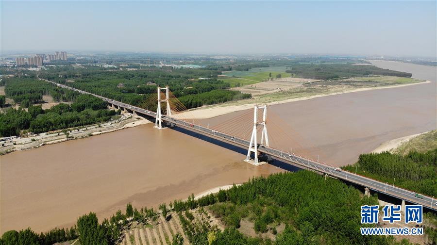 4月24日在山東濟南拍攝的黃河景色(無人機照片)。春暖花開的時節(jié),濟南黃河兩岸春風送綠,大河、綠植與城市構成了一幅春的畫卷。新華社記者王凱攝