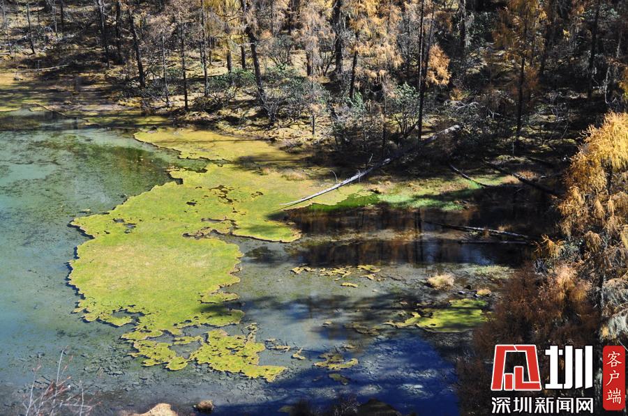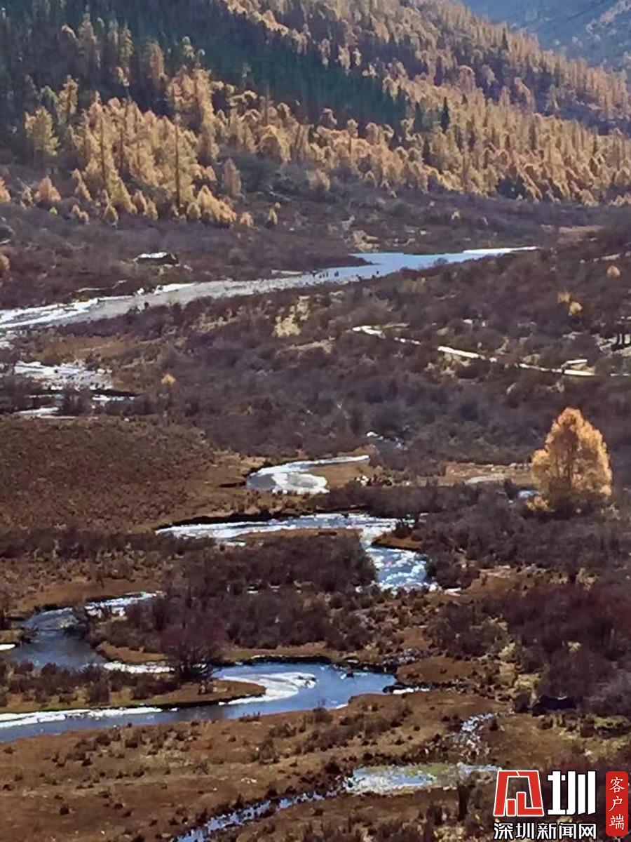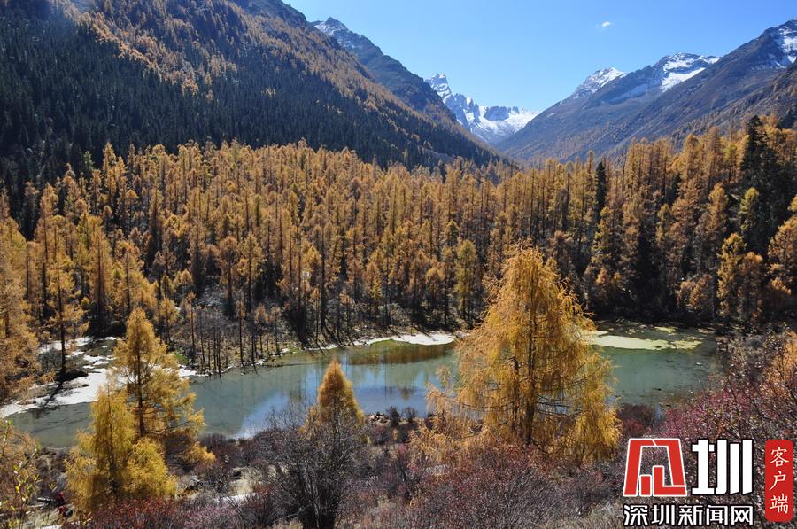 溝里有大片的落葉松、杜鵑和云杉林,雪山、海子、濕地、河流等景觀應(yīng)有盡有,唯獨(dú)沒(méi)有公路,只能沿木棧道徒步游覽。李仁奇攝