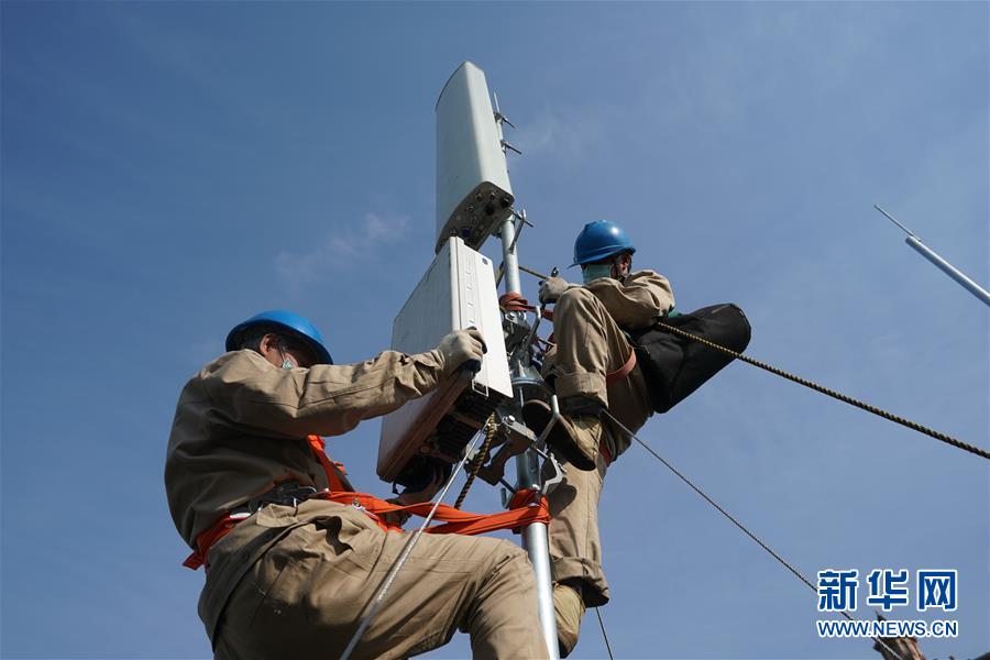 4月25日,在南京220千伏城南河變電站屋頂,工人在架設(shè)5G設(shè)備。當(dāng)日,三大通信運(yùn)營(yíng)商的2座5G、3座4G基站建設(shè)工作在南京220千伏城南河變電站屋頂有序展開。在變電站內(nèi)建設(shè)基站可有效利用電網(wǎng)資源,縮短建設(shè)周期,節(jié)約建設(shè)成本。新華社記者季春鵬攝