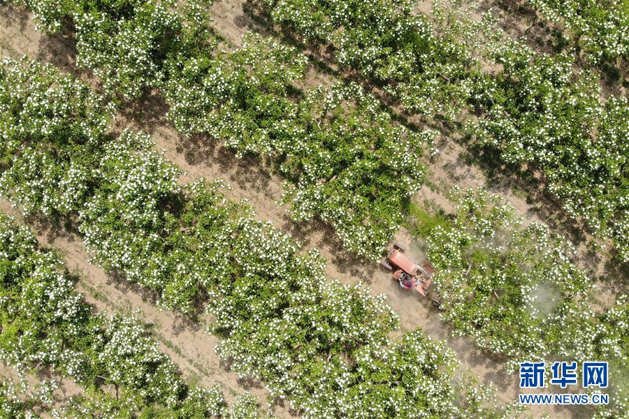 4月26日,農(nóng)民駕駛農(nóng)機在河北省清河縣馬屯紅果種植專業(yè)合作社的山楂種植區(qū)內(nèi)勞作(無人機照片)。4月下旬以來,河北省清河縣2萬余畝山楂樹競相開花,成為一道亮麗的風(fēng)景線。清河縣年產(chǎn)山楂7.5萬余噸,山楂種植已成為當(dāng)?shù)剞r(nóng)民的重要增收途徑。新華社記者牟宇攝