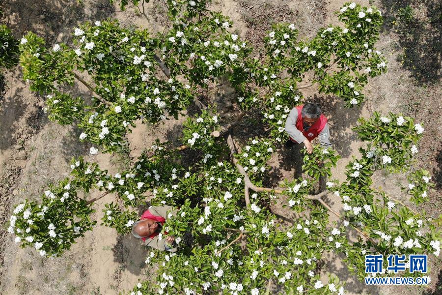 4月26日,農(nóng)民在河北省清河縣馬屯紅果種植專業(yè)合作社的山楂種植區(qū)內(nèi)為果樹疏花(無人機照片)。4月下旬以來,河北省清河縣2萬余畝山楂樹競相開花,成為一道亮麗的風景線。清河縣年產(chǎn)山楂7.5萬余噸,山楂種植已成為當?shù)剞r(nóng)民的重要增收途徑。新華社記者牟宇攝