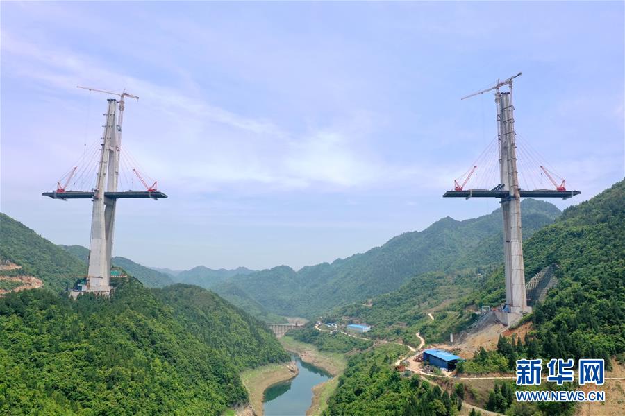 這是建設(shè)中的遵余高速湘江大橋(4月26日攝,無人機(jī)照片)。近日,由中鐵廣州局承建的貴州遵余高速湘江大橋工程在做好疫情防控的同時(shí),全力恢復(fù)生產(chǎn)建設(shè)。目前工程進(jìn)展順利,正在進(jìn)行主橋鋼梁架設(shè),預(yù)計(jì)將于8月底合龍。據(jù)了解,遵余高速湘江大橋橋梁全長1700余米,主跨560米。新華社記者劉續(xù)攝