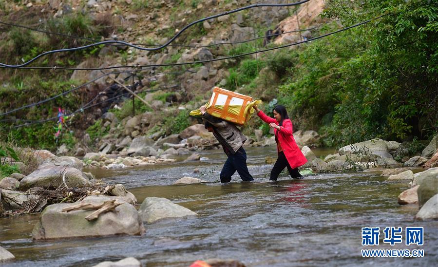 3月25日,在桂黔烏英苗寨,村民將螺苗搬往田間,準備投放。新華社記者黃孝邦攝