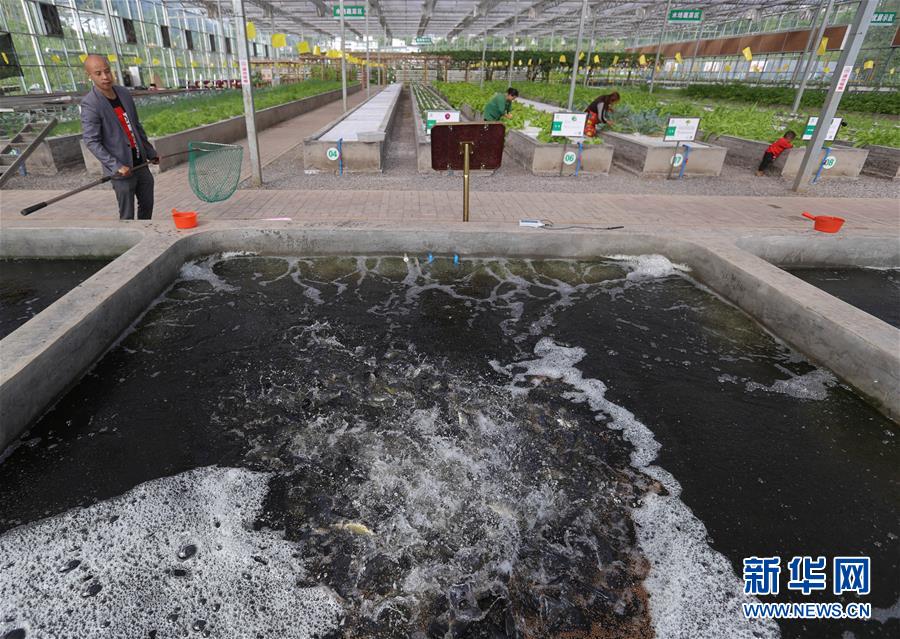 4月29日,在珙縣三合村現(xiàn)代農(nóng)業(yè)產(chǎn)業(yè)示范園區(qū),魚(yú)塘的廢水接入無(wú)土栽培蔬菜棚中進(jìn)行養(yǎng)種循環(huán)利用。新華社記者江宏景攝
