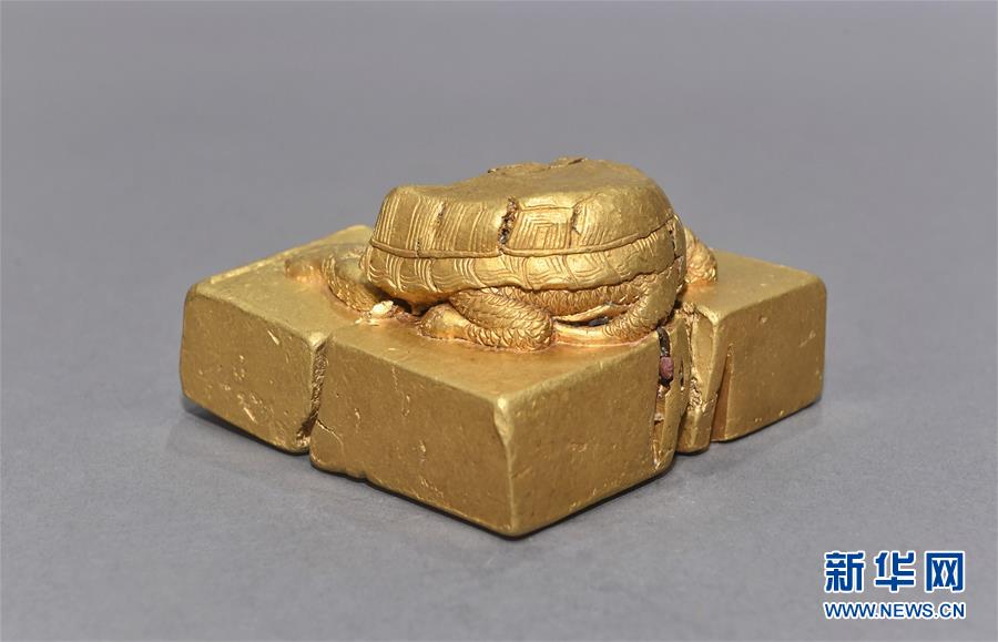 這是發(fā)掘出水的麒麟紋金牌飾(4月15日攝)。新華社記者劉坤攝