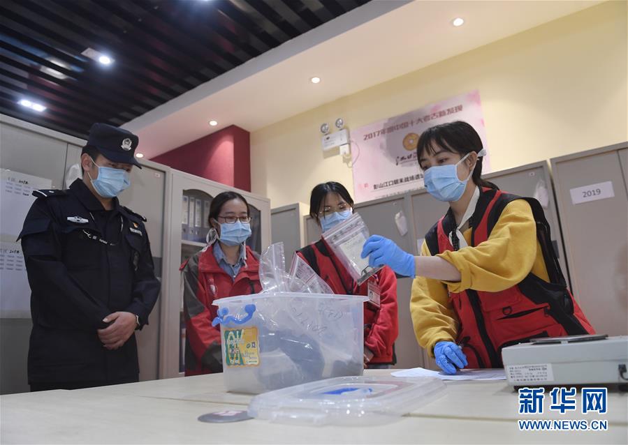 考古人員按照規(guī)定流程將當(dāng)日出水的文物登記入庫(4月15日攝)。新華社記者劉坤攝