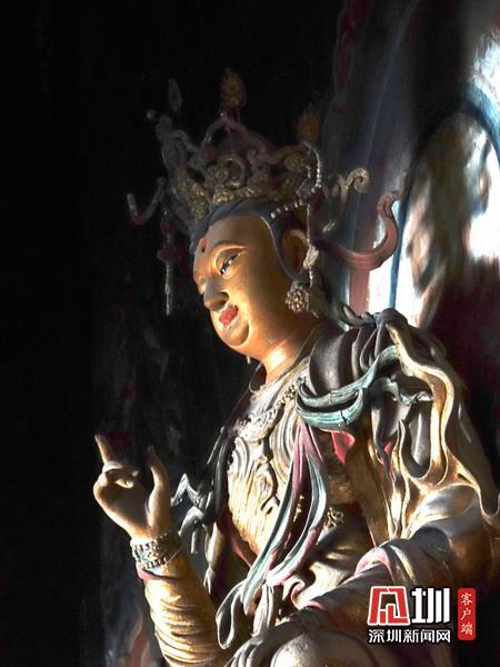 報(bào)恩寺布局結(jié)構(gòu)酷似北京紫禁城,被稱為“深山故宮”。寺內(nèi)古木參天,氣象森嚴(yán),飛檐凌空,金碧輝煌。大悲殿中的用整根楠木雕成的千手千眼觀音像、華嚴(yán)藏中的轉(zhuǎn)輪經(jīng)藏和泥塑蟠龍,以及遍布全寺的彩繪壁畫,都是世間罕見(jiàn)的藝術(shù)珍品。李仁奇攝