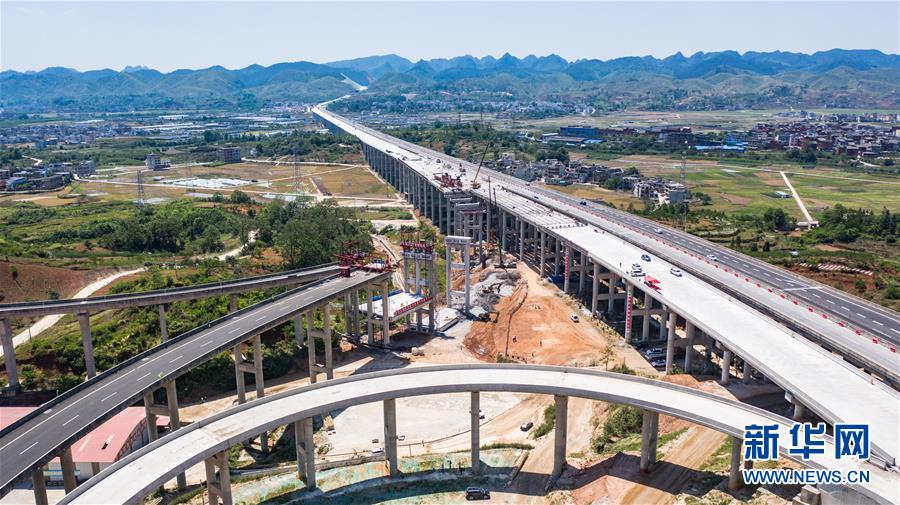 都安高速改擴建路段的惠水特大橋與惠水樞紐(無人機照片,5月9日攝)。 新華社記者 陶亮 攝