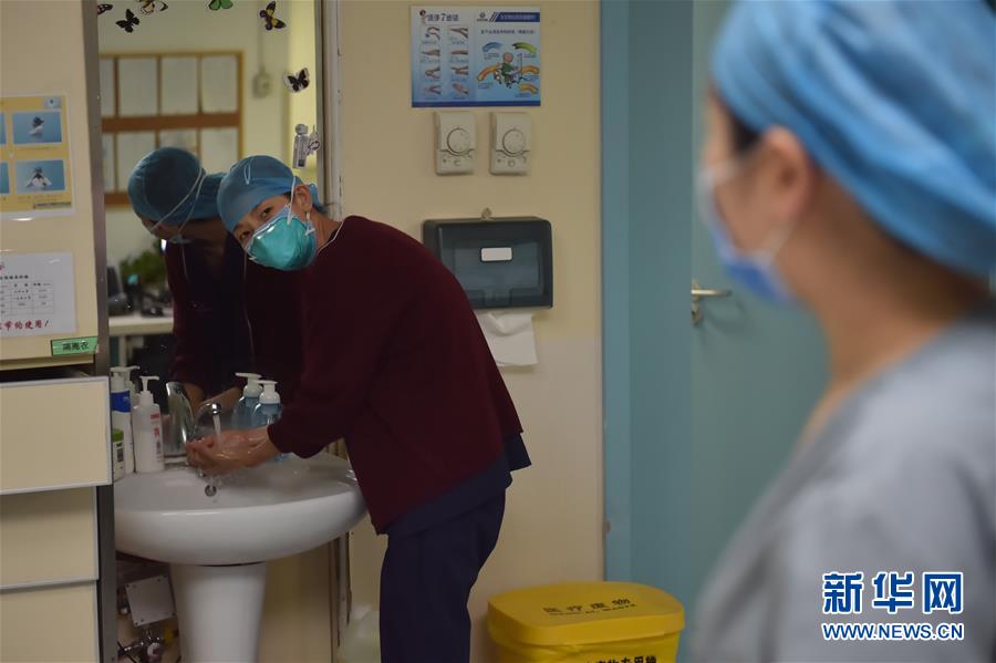 5月11日,在北京地壇醫(yī)院感染二科護士站,一名護士在洗手。北京地壇醫(yī)院是北京市收治新冠肺炎患者的定點醫(yī)院之一,醫(yī)院的醫(yī)護人員一直奮戰(zhàn)在抗擊疫情的一線。在國際護士節(jié)前夕,記者前往北京地壇醫(yī)院,記錄下抗疫一線護士的日常工作狀態(tài)。新華社記者彭子洋攝