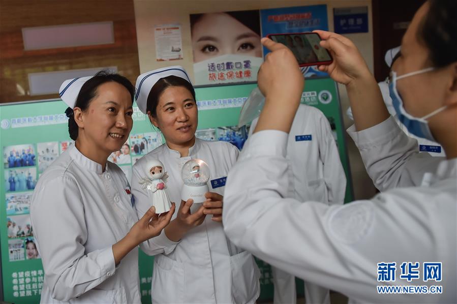 5月11日,在北京地壇醫(yī)院感染二科護士站,護士們被在護士節(jié)收到的禮物——天使玩偶所吸引。北京地壇醫(yī)院是北京市收治新冠肺炎患者的定點醫(yī)院之一,醫(yī)院的醫(yī)護人員一直奮戰(zhàn)在抗擊疫情的一線。在國際護士節(jié)前夕,記者前往北京地壇醫(yī)院,記錄下抗疫一線護士的日常工作狀態(tài)。新華社記者彭子洋攝