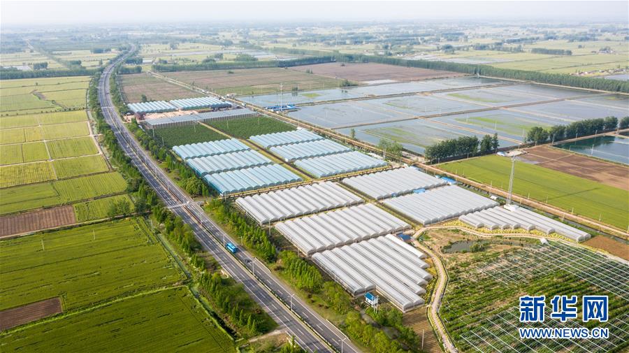 這是5月11日拍攝的金湖縣萬(wàn)畝連片農(nóng)業(yè)示范帶(無(wú)人機(jī)照片)。