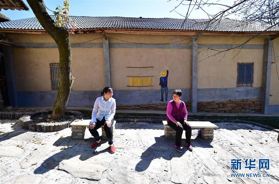 在安康市漢濱區(qū)茨溝鎮(zhèn)西溝村,村民在改造后的房屋院子內(nèi)活動(2018年10月29日攝)。新華社記者邵瑞攝