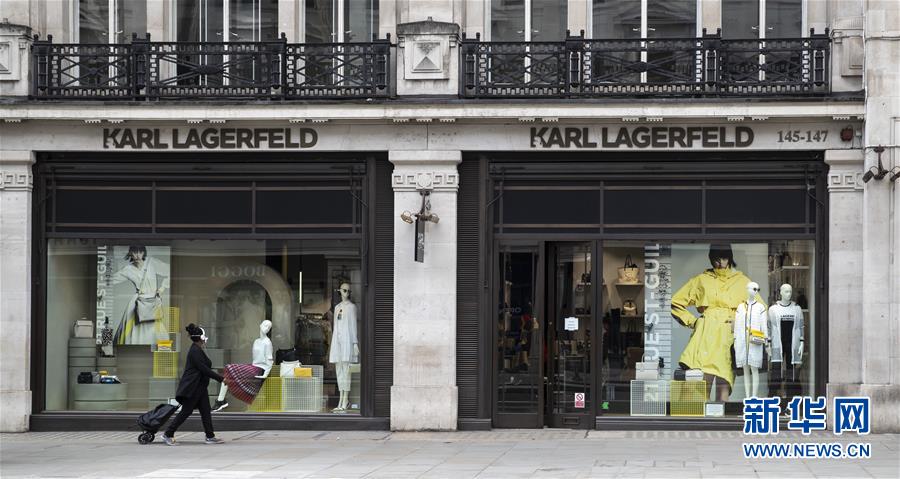 5月12日,一名女子從英國(guó)倫敦?cái)z政街關(guān)閉的店鋪前經(jīng)過。