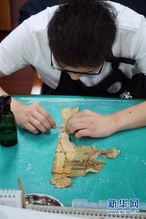 5月13日,古籍修復(fù)師在對書頁進(jìn)行修復(fù)。天一閣藏品修復(fù)部目前有修復(fù)師14人,每年約修復(fù)古籍14000余頁。據(jù)介紹,修復(fù)一冊古籍通常需要1至2個月,有的甚至需要1年以上。新華社記者鄭夢雨攝