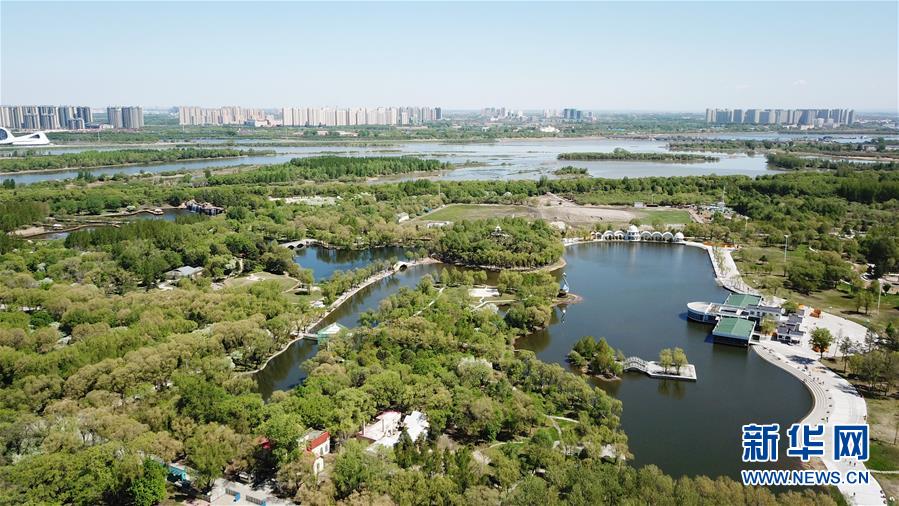 這是5月13日拍攝的太陽島風景區(qū)(無人機照片)。時下,位于黑龍江省哈爾濱市的太陽島國家級風景名勝區(qū)草青樹綠,綠意盎然。新華社記者王建威攝