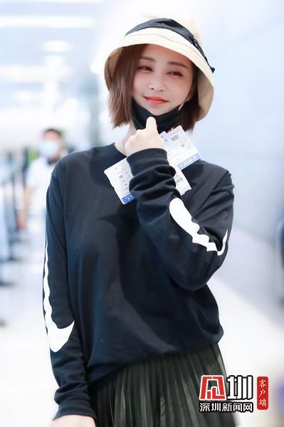 2020年5月14日,上海,張歆藝現(xiàn)身機(jī)場(chǎng)。她頭戴遮陽(yáng)帽,口罩遮面,穿著黑色長(zhǎng)袖T恤搭配百褶長(zhǎng)裙,自提行李箱現(xiàn)身機(jī)場(chǎng),獲粉絲送機(jī),揮手道別。