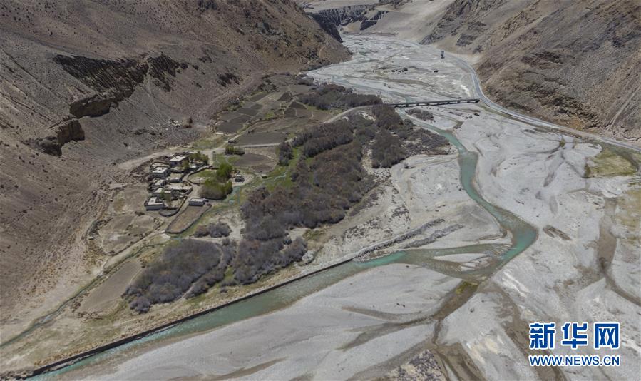 珠穆朗瑪峰國家級自然保護區(qū)內(nèi)的村莊與濕地(5月16日攝,無人機照片)。新華社記者普布扎西攝