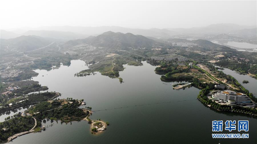 這是5月17日拍攝的雪野湖景色(無人機照片)。山東濟南風景區(qū)——雪野湖波光粼粼,岸邊綠樹環(huán)抱,加上星星點點的帆船在湖面搖曳,景色宜人。新華社記者王凱攝