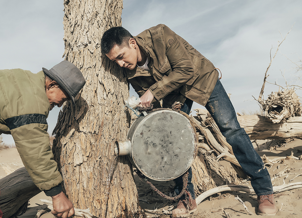 近日,“失蹤人口”胡歌遠赴G7公路沿線內(nèi)蒙古額濟納旗做公益,參與守護G7公路生態(tài)公益項目。當天胡歌身穿卡其色外套,配上寸頭Man味十足,暴曬在烈日下的他皮膚曬成了古銅色,手拿鏟子親自挖沙植樹、澆水。雖然衣服上沾滿沙土,但“灰頭土臉”種樹的他依舊男神范兒滿滿。閑暇之余,胡歌還向當?shù)胤N樹人討教,把種樹攻略手寫在小本上,身體力行而又嚴謹細心的公益態(tài)度令人感動?!跋蓜α羰貎和焙枳钭尵W(wǎng)友操碎心的就是感情問題,幾個月未露面的他仍然把精力都放在公益上,看來網(wǎng)友要繼續(xù)操心了。