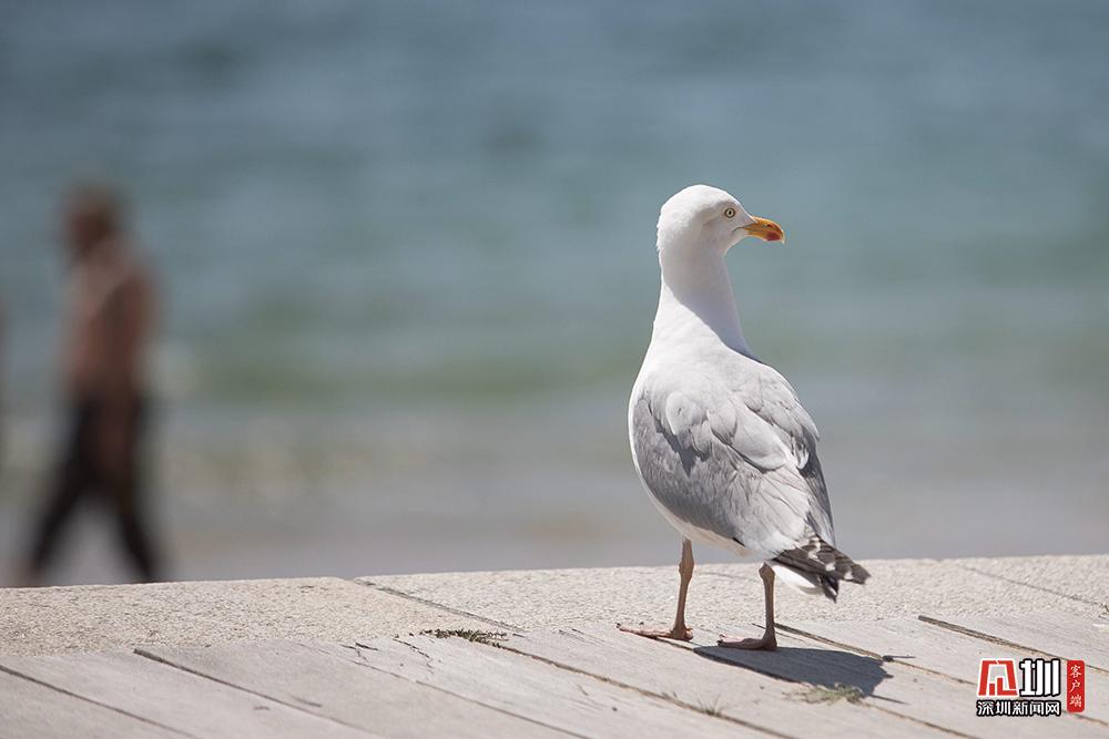 當地時間2020年5月16日,法國貝諾代,海鷗在海邊望海。