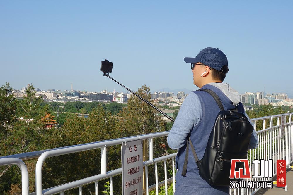 北京碧空萬(wàn)里 游客登景山公園賞故宮美景