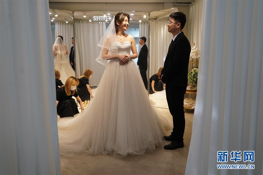 5月19日,新人們準(zhǔn)備拍攝婚紗照。當(dāng)日,15對(duì)新人在江蘇南京集體拍攝婚紗照,并將參加5月20日在南京舉行的“今世緣白衣天使集體婚禮”。拍攝婚紗照的部分新人此前因馳援武漢或參加所在城市抗疫工作而推遲婚期。新華社記者季春鵬攝