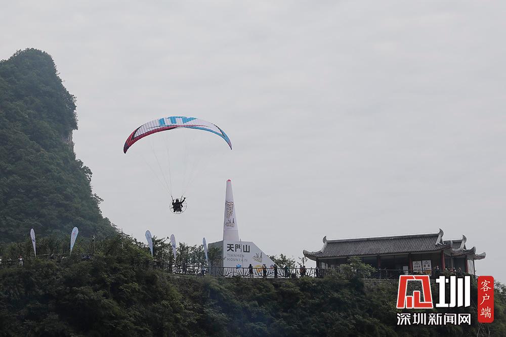 2019年6月下旬,來自Parabatix的天空賽手,六個(gè)國(guó)家的七名世界頂尖的動(dòng)力傘飛行員,在張家界天門山順利完成了花式技巧賽。