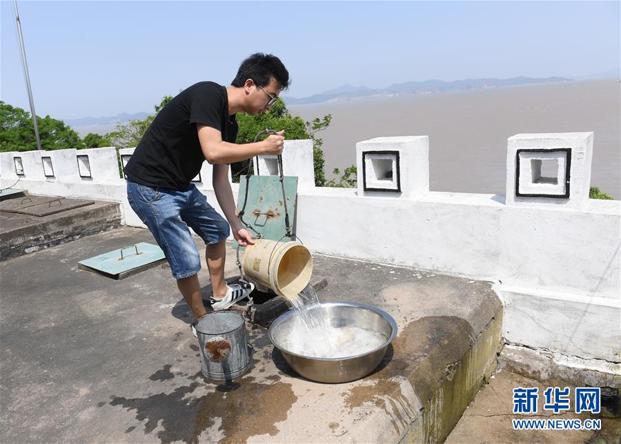 5月20日,在寧波七里嶼,葉家第五代燈塔工葉超群從水窖內(nèi)打水。為了克服淡水短缺的問題,燈塔工收集雨水存入水窖作為生活用水。