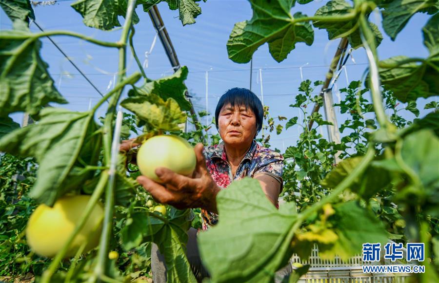 5月20日,新河縣尋寨鎮(zhèn)桃園村村民在采摘甜瓜。近年來,河北省新河縣尋寨鎮(zhèn)在推進(jìn)農(nóng)業(yè)供給側(cè)結(jié)構(gòu)性改革中,把甜瓜種植作為扶貧產(chǎn)業(yè)項(xiàng)目。村集體把部分閑置的土地流轉(zhuǎn)給本村有就業(yè)能力的貧困戶,并引導(dǎo)他們規(guī)?;N植甜瓜,帶動群眾脫貧增收。新華社記者王曉攝